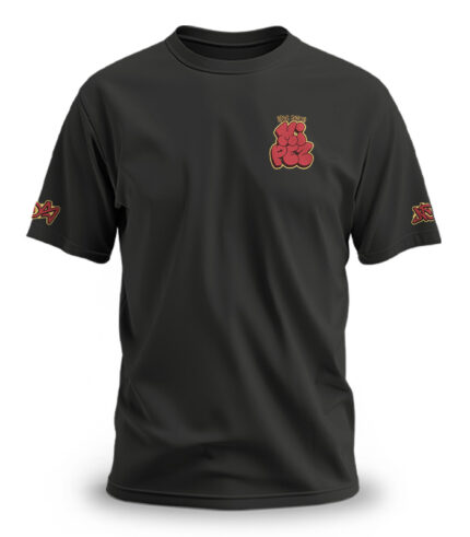 - El Estampado: Ilustración pequeña del graffiti «Mi Pez» en el pecho, ilustración grande en la espalda y firmas en las mangas. Realizados en DTF de alta definición.