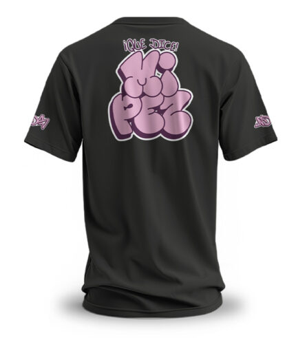 • El Estampado: Ilustración pequeña del graffiti «Mi Pez» en el pecho, logo de la marca en la espalda y firmas en las mangas. Realizados en serigrafía (o DTF) de alta definición.