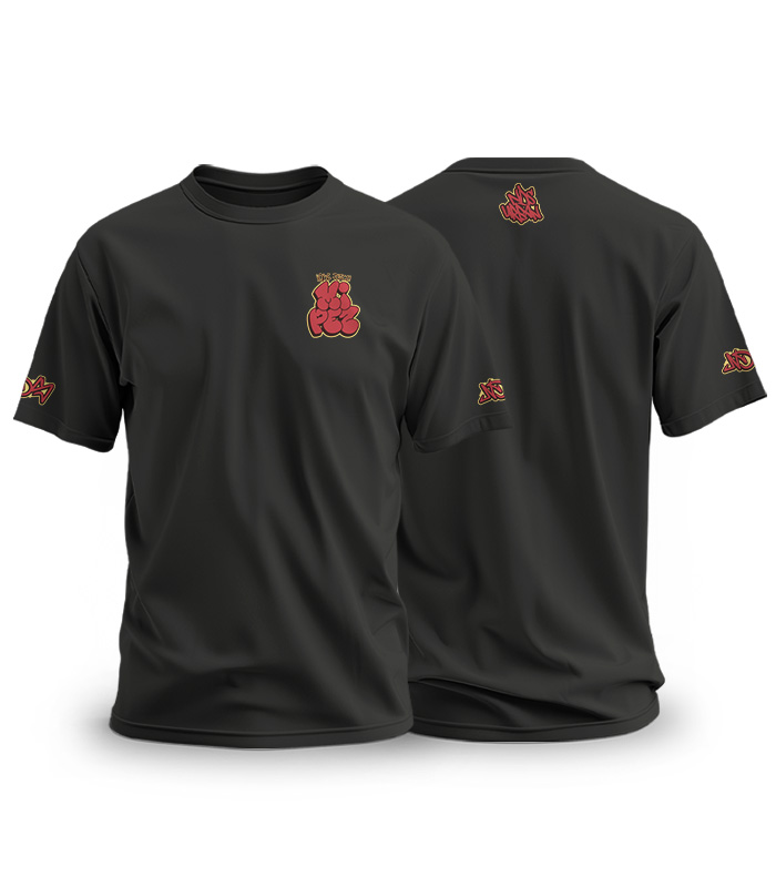 En esta versión, el saludo más parcero de Colombia se convierte en tu emblema personal. Ubicado de forma discreta en el pecho, el graffiti «¡Qué Dice, Mi Pez!» arde con los colores del magma. Es un detalle que habla de una amistad a prueba de todo, de un lazo cálido e inquebrantable que no necesita ser el centro de atención.